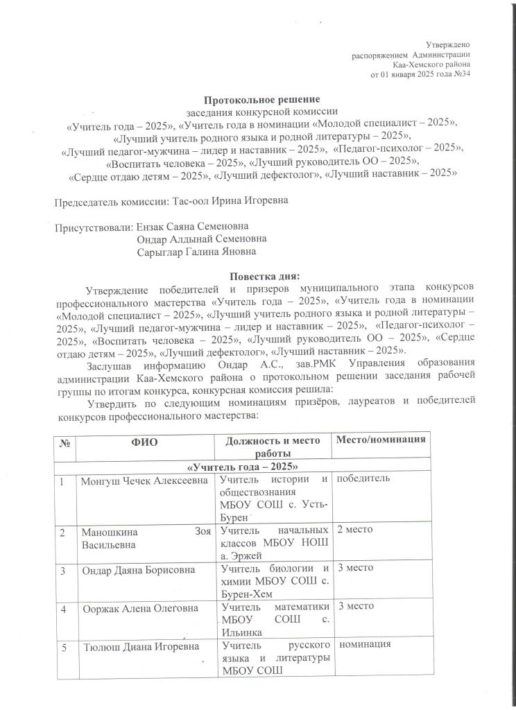 Протокольное решение заседания конкурсной комиссии