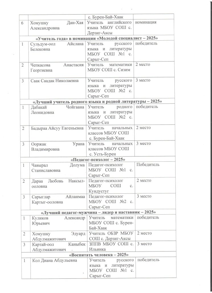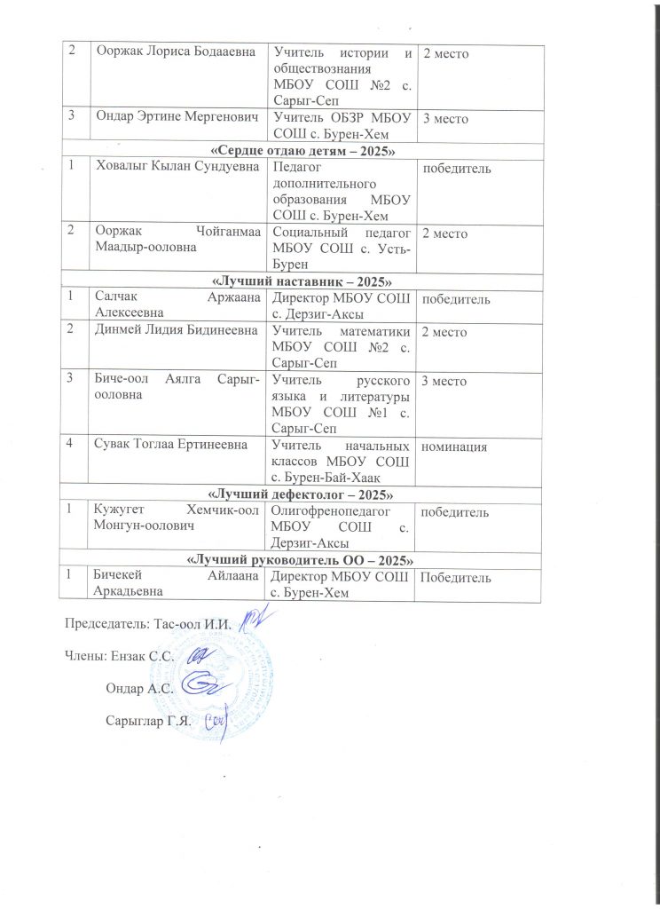 Образование — высшее, Тувинский государственный университет 1996г, специальность:— учитель химии и обсуживающего труда, стаж— пед.стаж 29 лет.