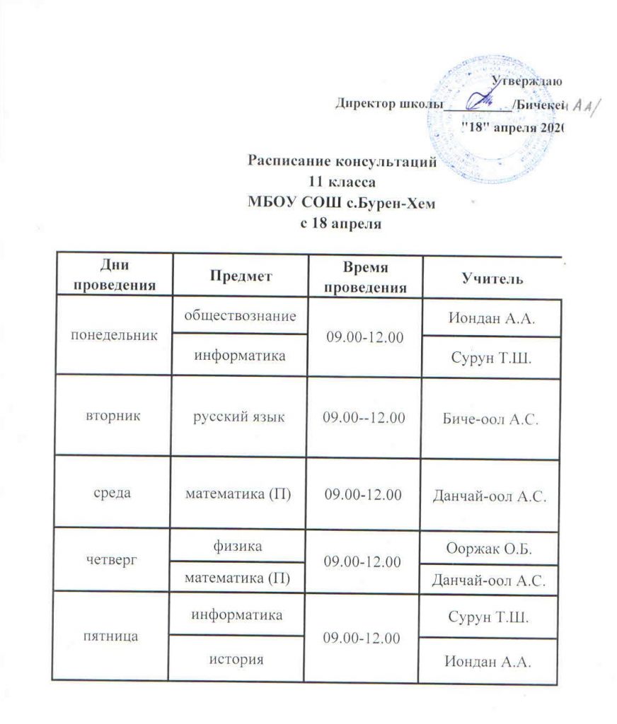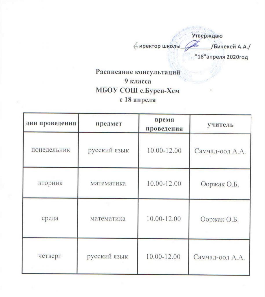 Расписание консультаций 9,11-х классов
