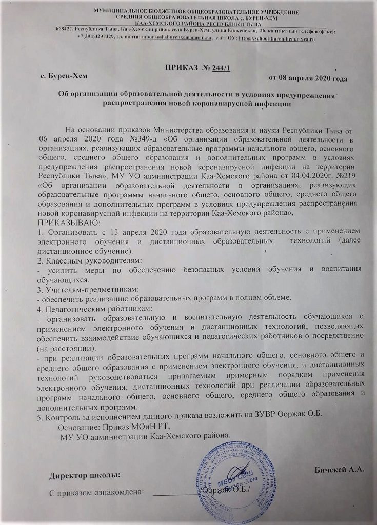 Приказ о переходе на обучение с помощью дистанционных технологий